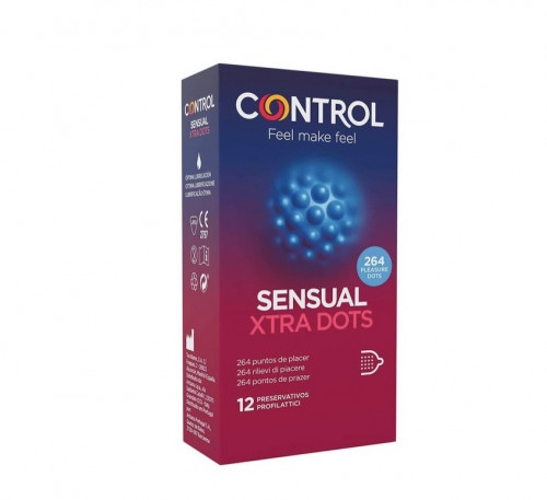 Control preservativos xtra sensation es el preservativo para lograr la estimulación perfecta. Ofrece sensaciones mucho más intensas y excitantes gracias a los 264 puntos de relieve estratégicamente colocados en su superficie. Tiene una anchura nominal de 53 milímetros y un largo de 190 milímetros. Su grosor es de 0,087 milímetros. La caja tiene un total de 12 preservativos con tres aromas diferentes. El producto ha pasado por un riguroso control de calidad, incluido un control electrónico unitario.