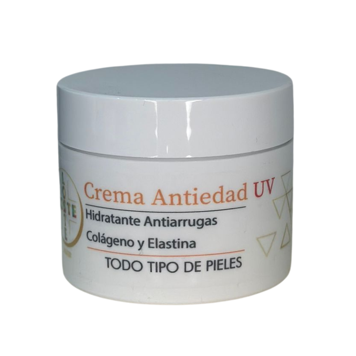 La Crema Antiedad UV Loste es un tratamiento avanzado especialmente formulado para combatir los signos visibles del envejecimiento cutáneo. Para todo tipo de piel. Su exclusiva combinación de potentes agentes antioxidantes y filtros solares protege la piel frente a los daños provocados por la radiación UV, al mismo tiempo que ayuda a prevenir y tratar arrugas, desigualdades en el tono y pérdida de firmeza. Gracias a su acción hidratante y reafirmante, esta crema contribuye a reducir la aparición de líneas de expresión, protegiendo la piel de las agresiones externas y manteniéndola luminosa, joven y saludable. Además, mejora visiblemente la textura cutánea, dejando una sensación suave, sedosa y confortable. Su fórmula ligera y de rápida absorción la convierte en una opción ideal para el uso diario.