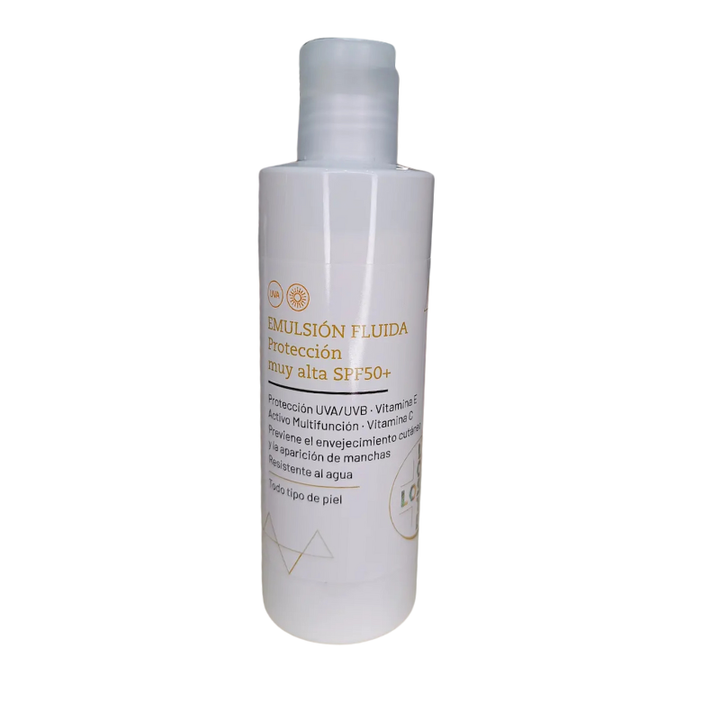 La Emulsión Fluida Protección Muy Alta SPF50+ Loste es el aliado perfecto para mantener tu piel protegida y saludable cada día. Su fórmula avanzada combina filtros solares de amplio espectro UVA/UVB con vitaminas C y E, potentes antioxidantes que ayudan a prevenir los signos del envejecimiento y a evitar la formación de manchas.