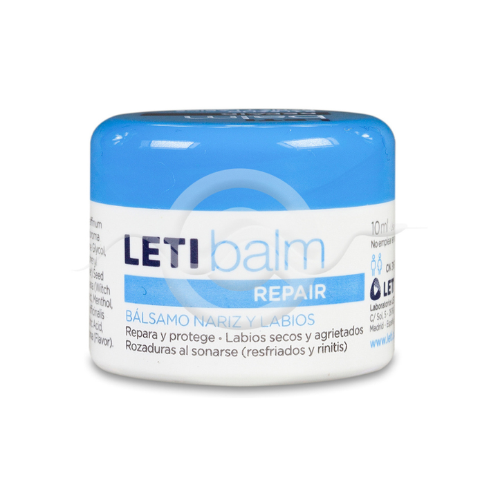 El bálsamo reparador Letibalm está formulado de manera única para el cuidado de la nariz y los labios durante todo el año. Calma, regenera y repara los labios secos y agrietados, así como las irritaciones causadas al sonarse, gracias a su acción reparadora intensa, emoliente, hidratante y protectora. Nutre la piel, reduciendo la tirantez y las grietas de los labios y protege contra las agresiones externas. No comedogénico, este producto es muy bien tolerado. Su eficacia ha sido probada en estudios clínicos y ha sido testado bajo control dermatológico. También ha sido testado en deportistas tras someterse a pruebas físicas en condiciones ambientales extremas, demostrando su capacidad de hidratación, protección y reducción de la tirantez en la zona labial. Asimismo, ha sido probado en pacientes tratados con isotretinoína por problemas de acné, y se ha evidenciado que Letibalm frena la sequedad labial, la evolución de grietas y fisuras, además de reducir la irritación y tirantez, síntomas producidos por los retinoides orales.