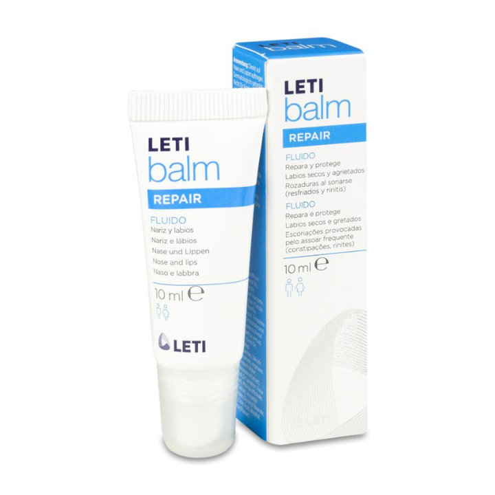 El Letibalm Fluido Reparador es un bálsamo reparador fluido destinado al cuidado de la nariz y los labios durante todo el año. Calma, regenera y repara los labios secos y agrietados, así como las irritaciones causadas al sonarse, gracias a su acción reparadora intensa, emoliente, hidratante y protectora. Nutre la piel, reduciendo la tirantez y las grietas de los labios, y protege contra las agresiones externas. Es un producto no comedogénico y muy bien tolerado, con eficacia probada en estudios clínicos. Está testado bajo control dermatológico y en deportistas tras someterse a pruebas físicas en condiciones ambientales extremas, garantizando hidratación, protección y reducción de la tirantez en la zona labial. También se ha probado en pacientes tratados con isotretinoína por problemas de acné, demostrando que el Letibalm frena la sequedad labial, la evolución de grietas y fisuras, y reduce la irritación y tirantez que son síntomas producidos por los retinoides orales.