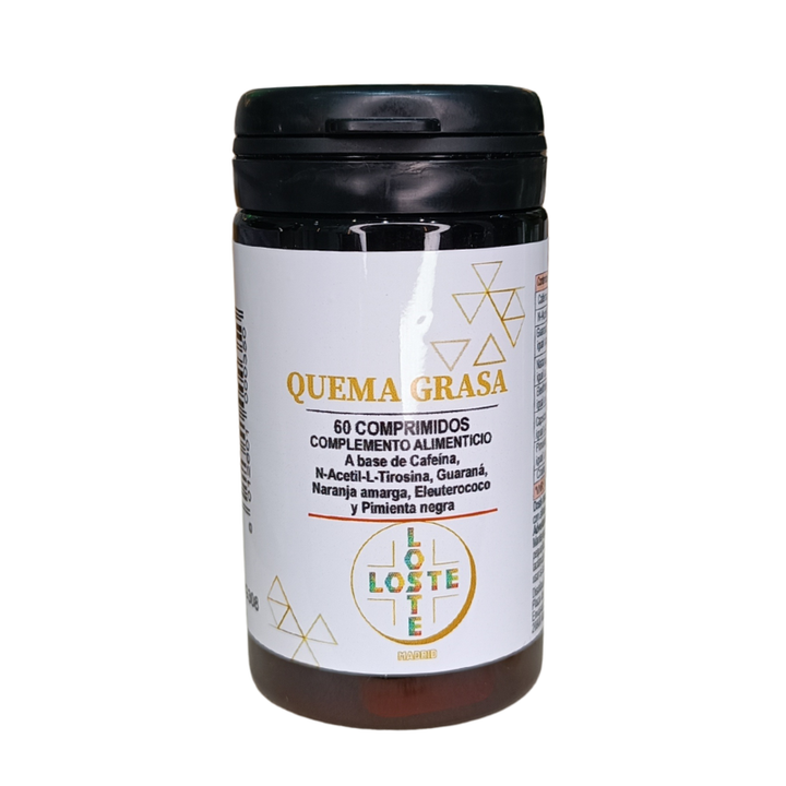 QUEMA GRASA LOSTE es un suplemento natural que ayuda a quemar grasa y activar el metabolismo, gracias a su fórmula. La cafeína aumenta la energía y activa la quema de calorías, la guaraná estimula y prolonga el efecto energizante y también la pimienta negra que mejora la absorción de los ingredientes activos.